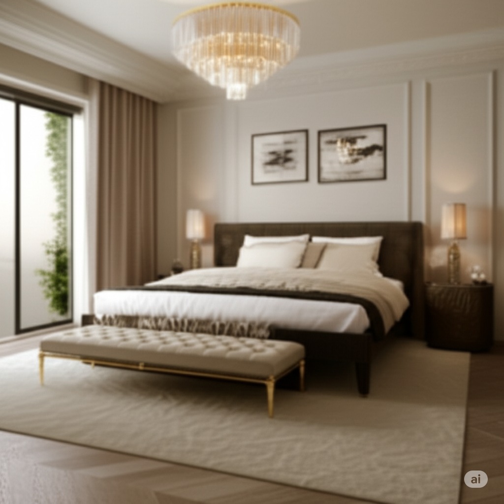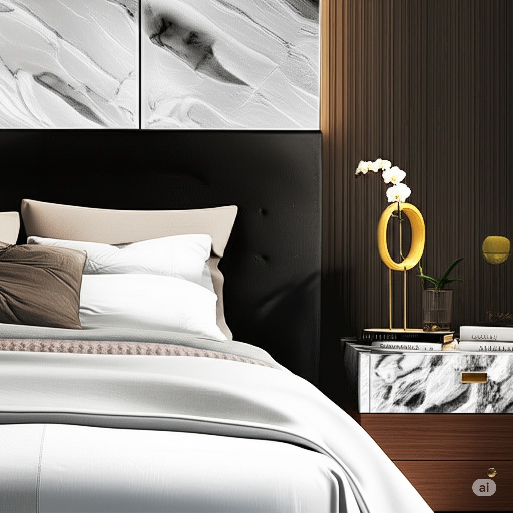 - Vật liệu (Materials): Ưu tiên vật liệu cao cấp, tự nhiên hoặc chế tác tinh xảo (gỗ quý, đá cẩm thạch, kim loại mạ, da thật, vải thượng hạng).
