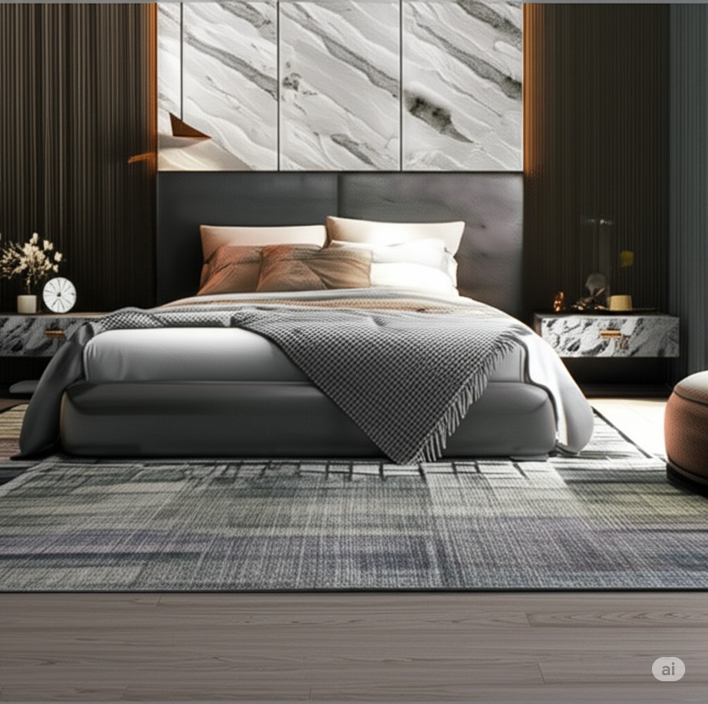 - Tường và sàn: Giấy dán tường kết cấu, ốp gỗ/đá, thảm (len, lụa, lông xù).