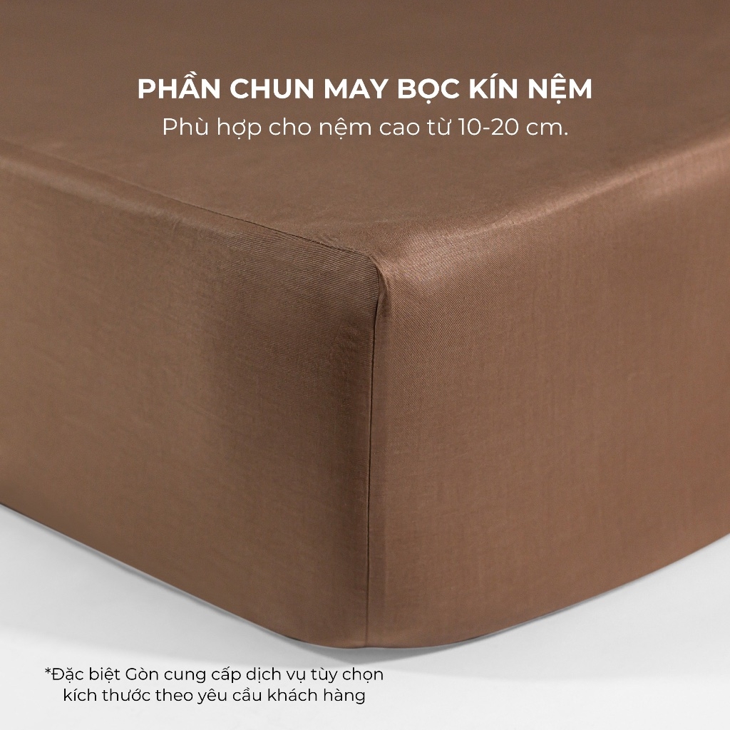 01 ga giường bo thun màu trơn tùy chọn một trong 05 kích thước, dành cho đệm từ 20cm trở xuống. Các kích thước khác có thể đặt hàng. Nếu chiều dày đệm lớn hơn 20cm vui lòng ghi chú trong đơn hàng. Sản phẩm drap cotton có đường nối.