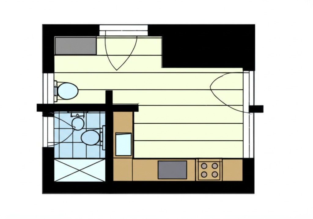 Tối ưu hóa không gian: Nội thất kích thước phù hợp (sofa văng/góc nhỏ gọn, bàn trà đơn giản, kệ tivi treo tường/thấp). Gam màu sáng (trắng, kem, pastel).